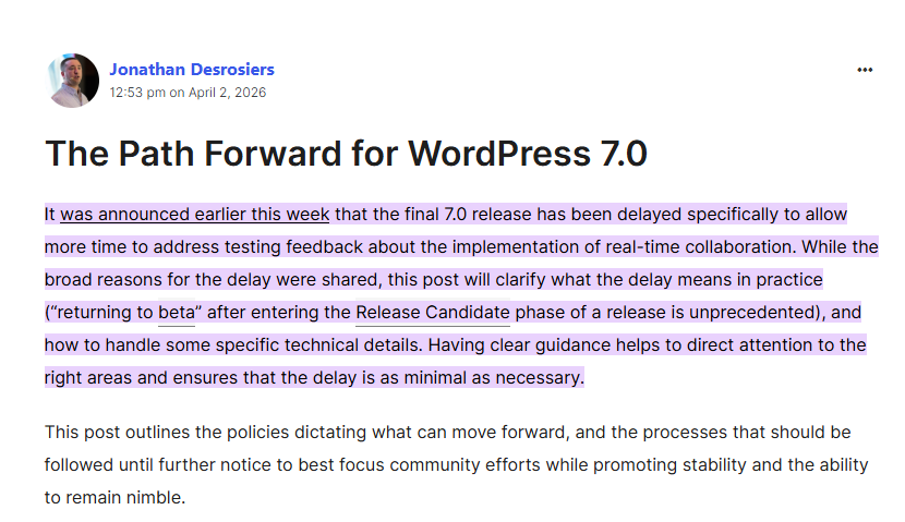 Yo tomo dos variables para ello. La fortaleza del liderazgo, y lo que ya conozco. En este momento me estoy moviendo de Woo / WP a Laravel. Mi principal razón para el cambio es la parte del liderazgo. En WP ha desaparecido el liderazgo técnico. El ejemplo más reciente es el que por primera vez en WP se regresa una versión de “Release Candidate” a “beta”. La razón: problemas de performance al almacenar información “Real time collaboration”. El problema de performance es al usar la tabla postmeta, que es la forma correcta de usar los estándares y la arquitectura de WP.